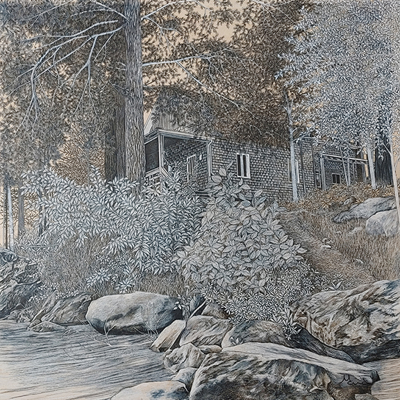 Maude Tapin is interested in the notion of imagination and travel, both physical and reflective. After having immortalized these inspiring views, she transfers the image onto a support of her choice (mainly canvas or wood) and then reinterprets them with very detailed drawings. Proximity to the work during long working hours gives it an intimate dimension. Starting from a spontaneous emotion that transports her, Maude Tapin then uses creation as a place of exchange and contemplation.